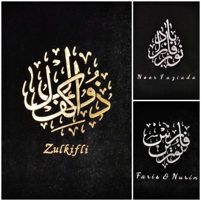 Dicetak atas art card frame: Kaligrafi islam, yang di dalam termasuk sering disebut sebagai kaligrafi arab atau seni lukis huruf arab, merupakan suatu seni artistik tulisan tangan, atau . Design kaligrafi arab dengan nama anda sendiri atau nama orang yang anda sayangi.